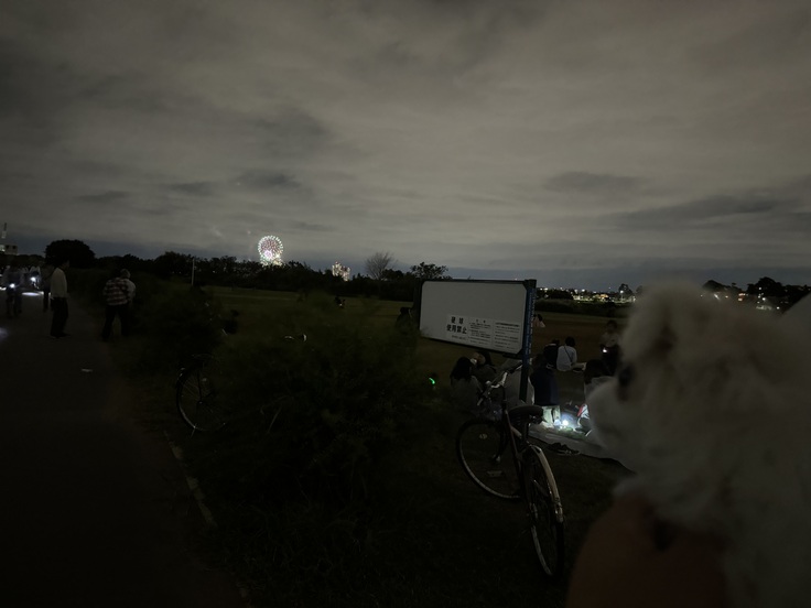 お散歩に行ったらたまたま河川敷の遠くの方で花火大会がやっていました😊