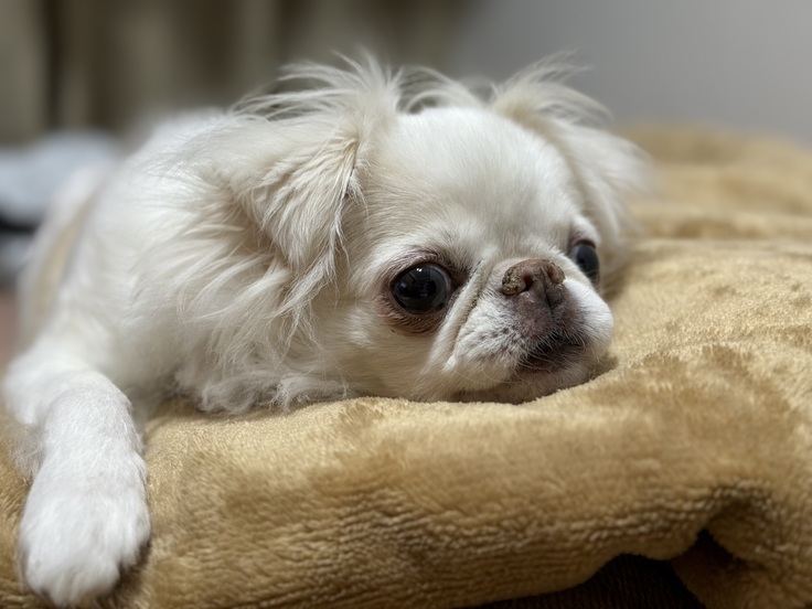最近のこむぎはあったかい毛布の上でのんびりすることが多いです。