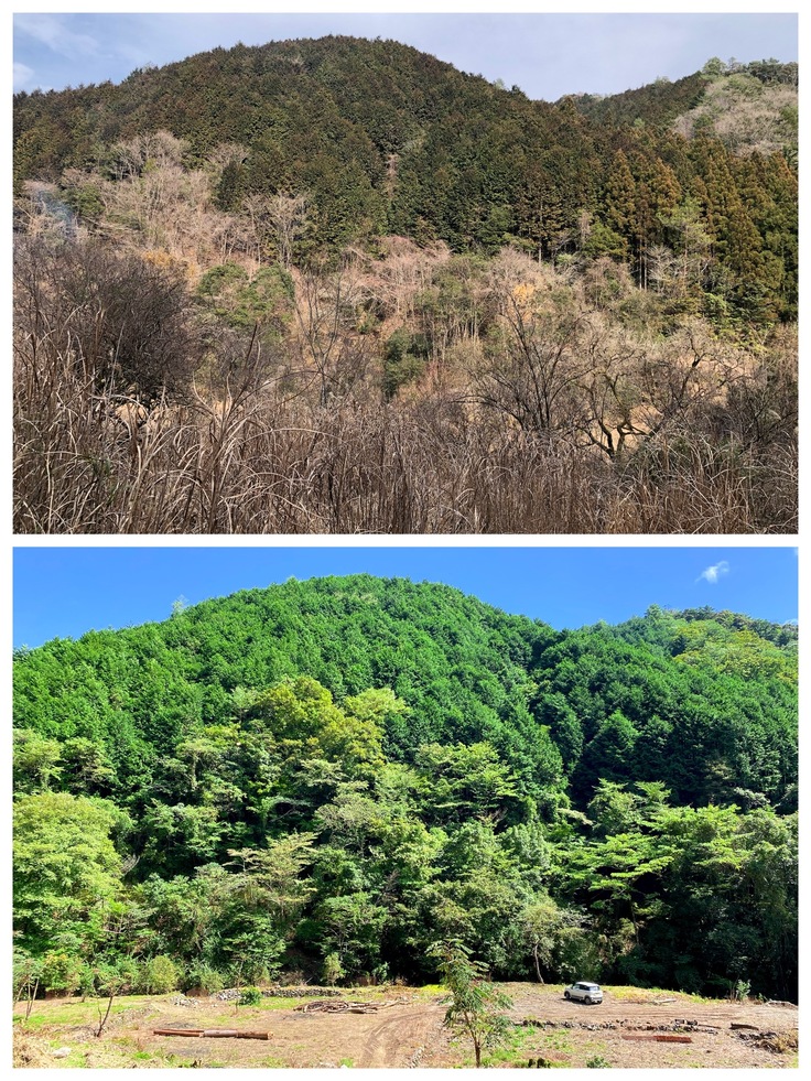 間伐して太陽の光が降り注ぐようになり明るくなった森