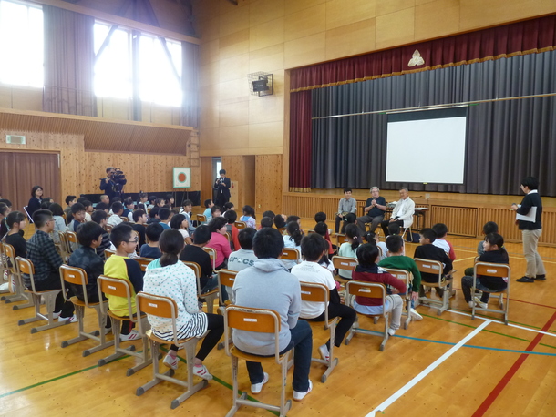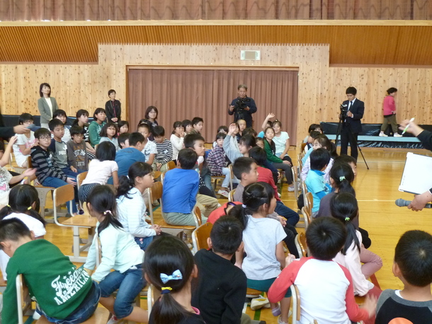 加藤到先生:私はいつも大学生に映画を見せて話しているのですが、今日は小学生のみんなが映画を真剣に見てすごく大きな声で笑って、見終わった後もしっかり自分の感想を言ってくれてとても立派だな、とても偉いなと思いました。大学生になると恥ずかしがり屋になって、あんまり自分が思ったことを言えない人が多くなるんです。でもみなさんは思ったことを正直に発表していたので見ていて気持ちがよかったです。