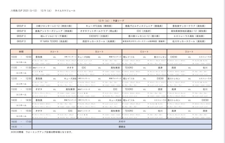 他にも千葉県準優勝:柏レイソル、神奈川県準優勝:川崎フロンターレ、奈良県準優勝:YF NARA TESORO、徳島県ベスト4:徳島ヴォルティスなども高知に来てくれます!!