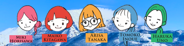 私たちは、北川、田中、堀澤、井上、宇野のママ友5人組です。