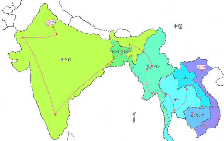 ※ミャンマーからバングラデッシュへ陸路で入国ができない為、インド経由で入国