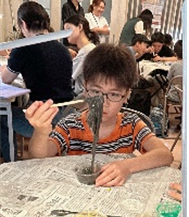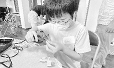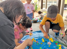 夏休みスペシャルの様子 めだかの学校(左) 廃材で動物をつくろう(中) スライムを作ろう(右)
