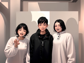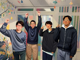 合格したこどもたちと保護者、学生ボランティアの様子(イラスト画像処理で失礼します)