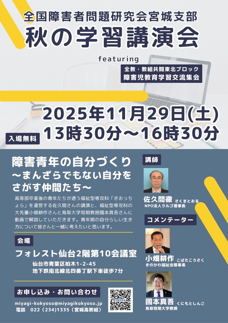 11月29日には仙台市青葉区の会場で佐久間所長がたっぷりときおっちょらの説明をします。きおっちょらで学ぶ青年たちの姿を報告します。
