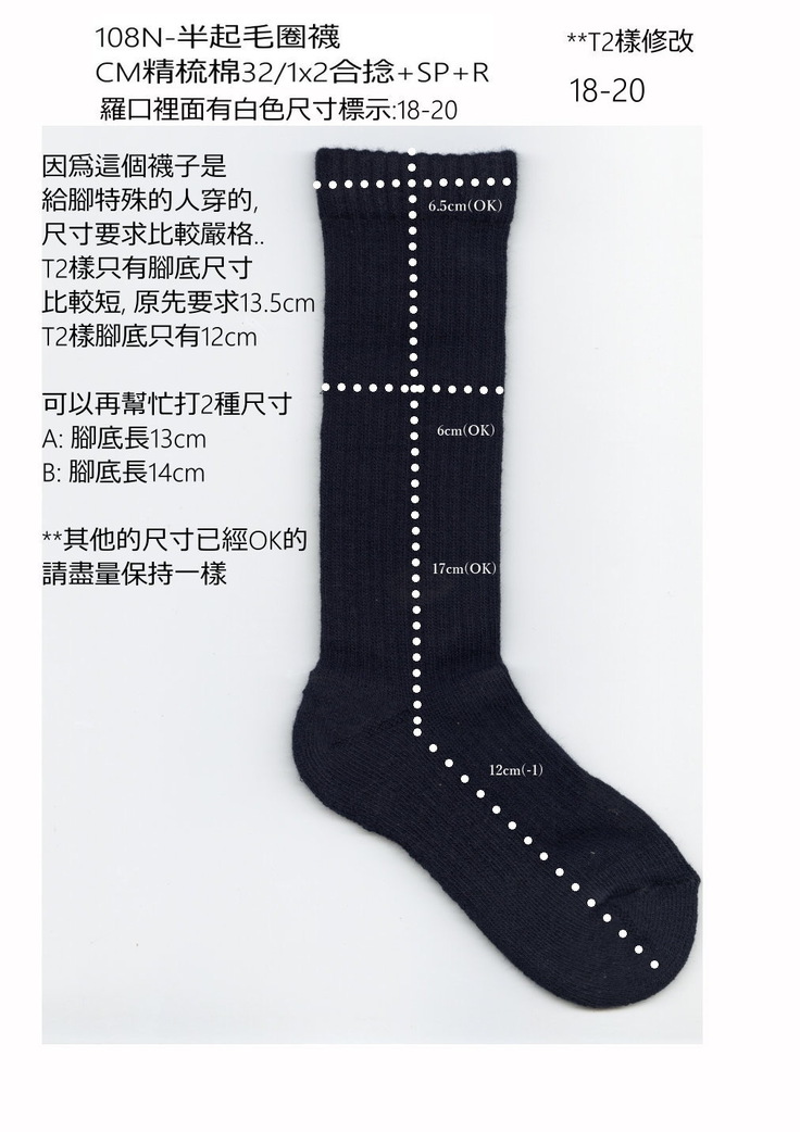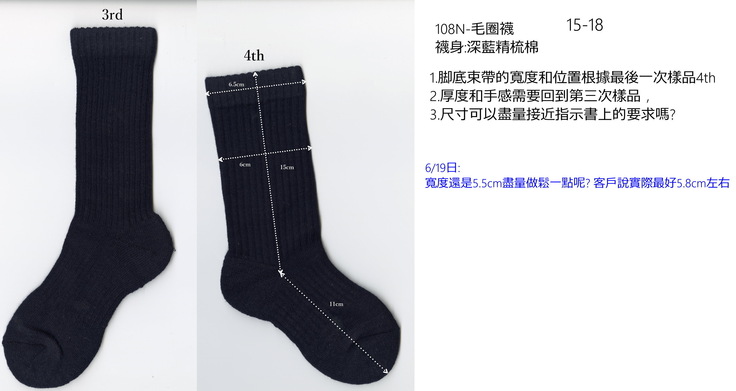 先日、15〜17cmと18〜20cmの靴下の仕様書が送られてきました。