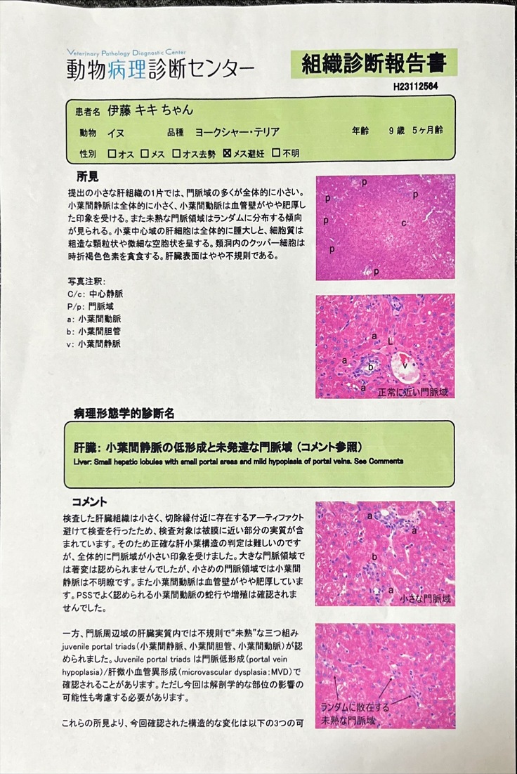 「手術でシャント血管の完全結紮は行えたため、門脈シャントは完治に向かうでしょう。しかし肝臓が小さい病気原発性門脈低形成が改善するのか見ていく必要があります。」と担当医の方から説明されました。