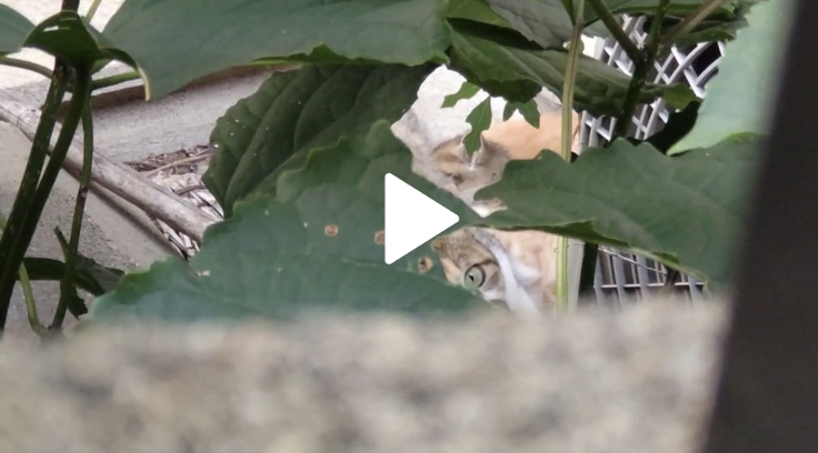 現場に向かう、草むらの中に4匹の子猫と母猫。