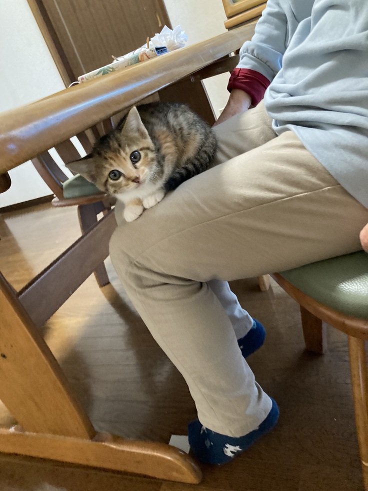 なんと!私ではなく、なんと!!自ら譲受先の方の膝へ乗りご挨拶してました。
