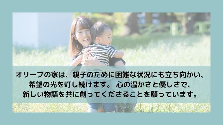 オリーブの家おやこ基金は、子どもたちが安心して笑顔を取り戻す手助けとなり、親たちが再び希望を抱くきっかけとなります。