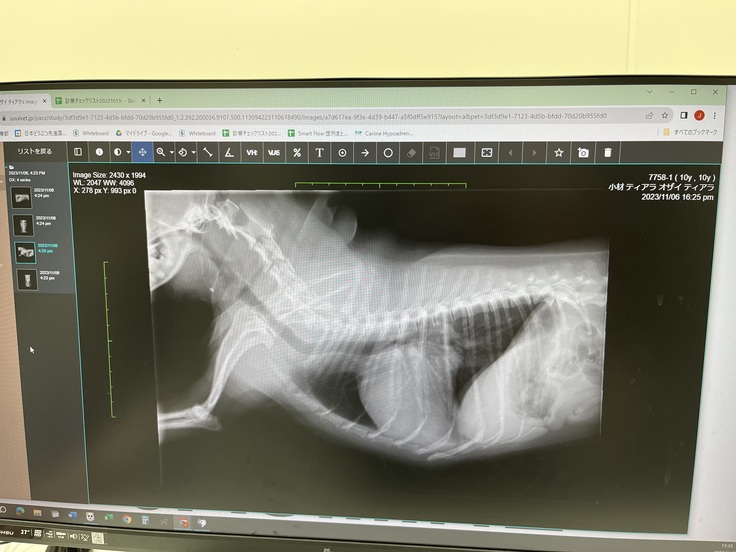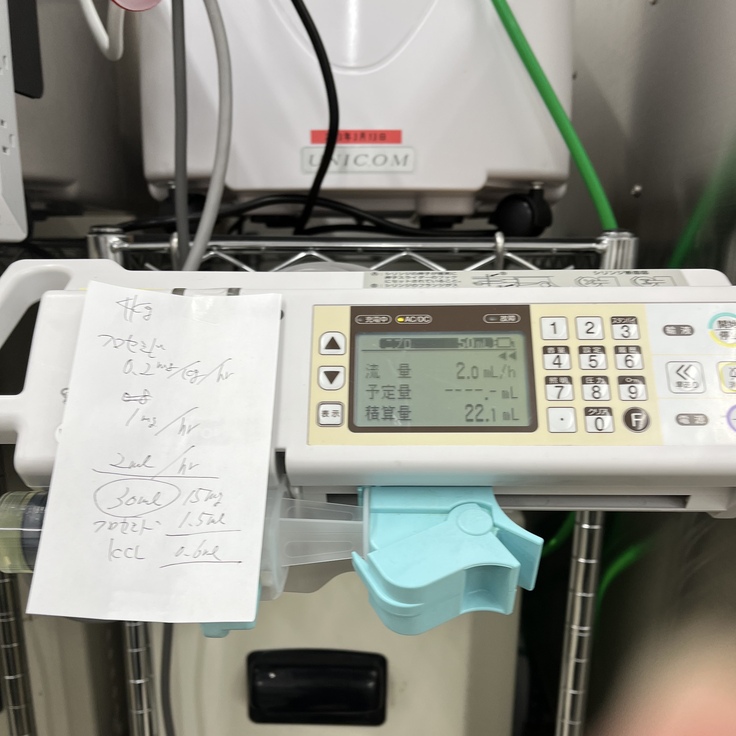 夜間の動物病院さんへ向かい直ぐに酸素室