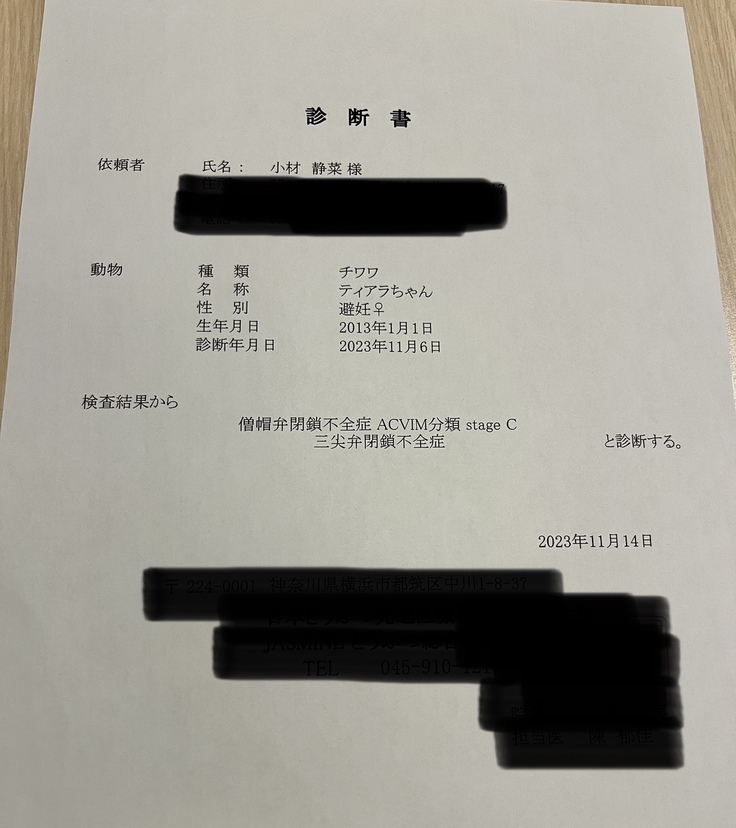 ティアラの僧帽弁閉鎖不全症の手術、入院、通院等に掛かる費用に充てさせていただきます。