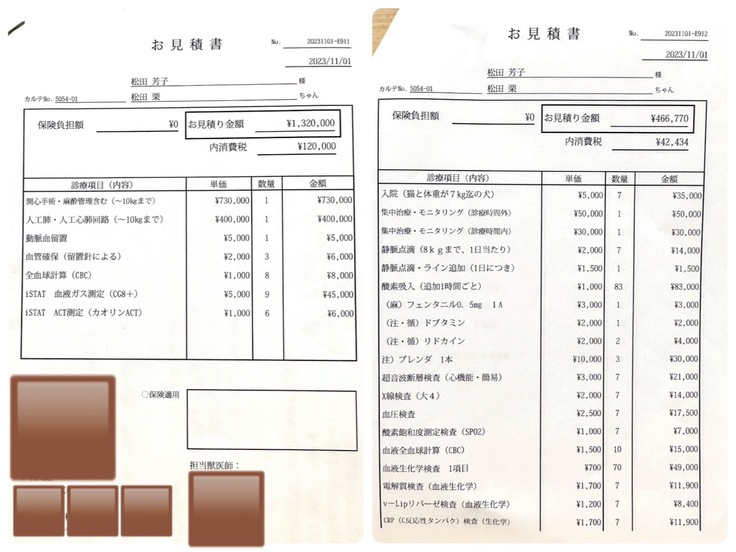 ページ上に掲載している診断書や診療明細書などの資料は全て動物病院から掲載の許諾を得ております。