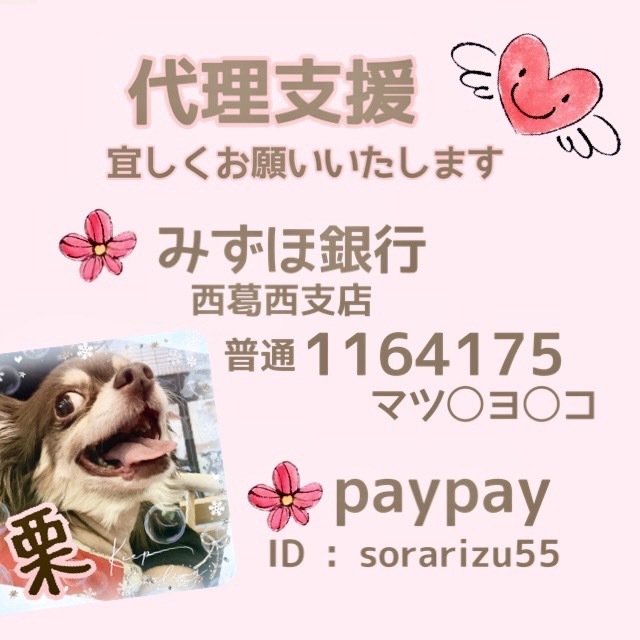 そのような訳で、大変、心苦しく身勝手なお願いではございますが、どうか皆さまに、足りない手術費用のためにお力をお貸しいただきたいと、この場をお借りしてお願いしている次第です。どうか、、温かいご支援を宜しくお願いいたします。。