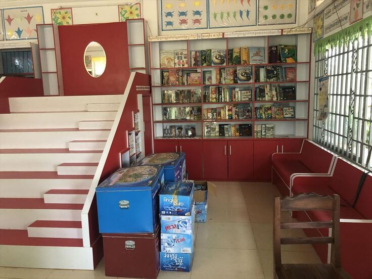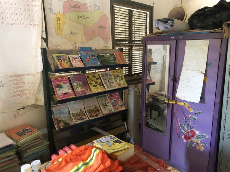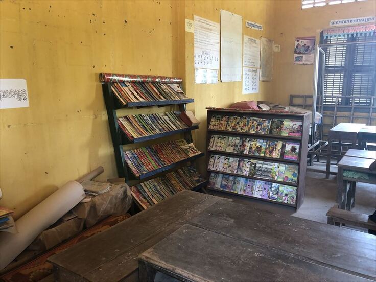 まず、こちらが、私が2017年に初めて訪問したカンボジアの小学校の図書室です。