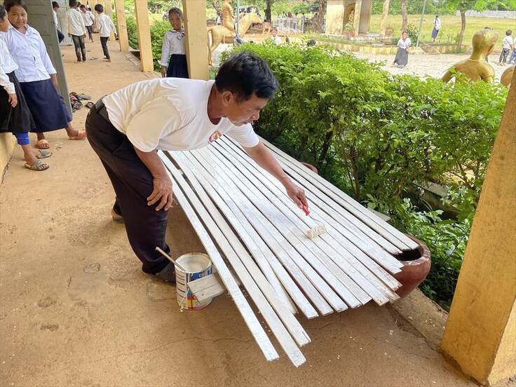教務のチャンティー先生は、外でペンキ塗りの作業です。