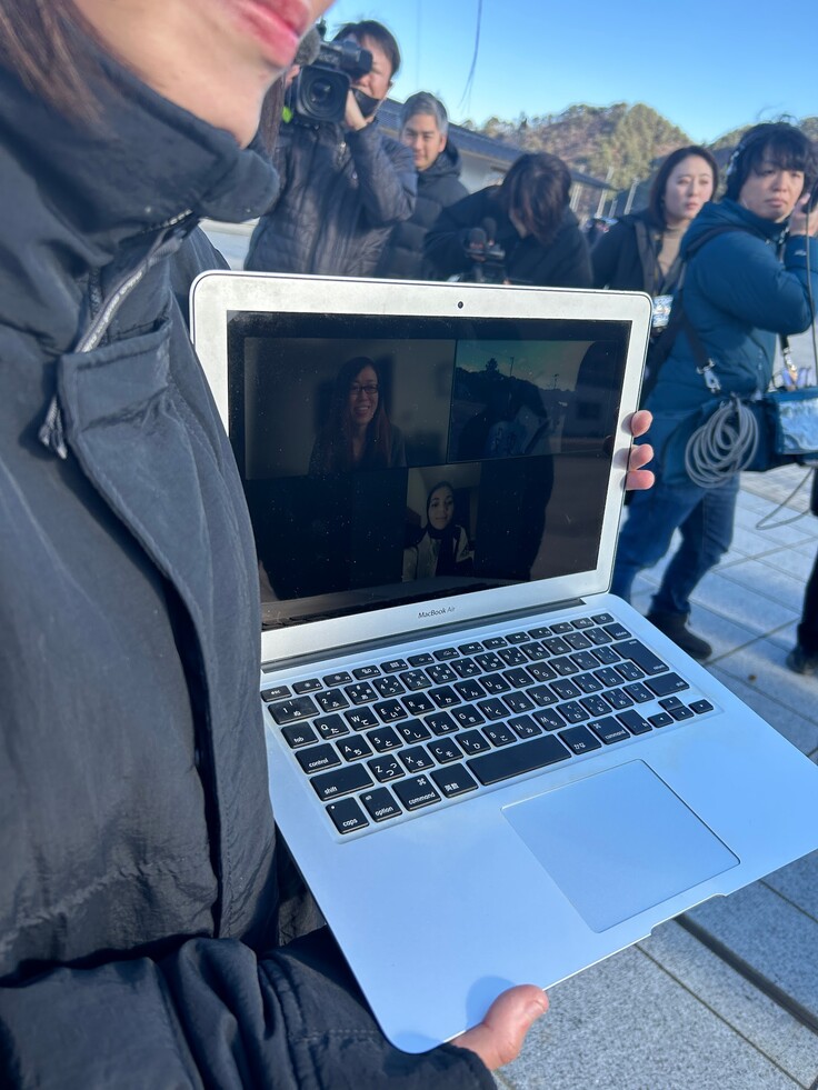 今日はUNRWAガザ事務所の吉田美紀さんと10月にガザから訪日していた中学生のジェナンさんともオンラインで交流し、凧をお見せしました。