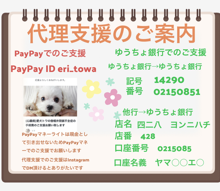 ☆皆様にご支援頂いた支援金は大切にトワの手術費用にさせて頂きます。