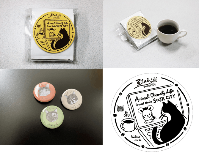 近年、動物たちと共に過ごすことは子どもの発育や高齢者の健康、障害者のリハビリ等を助けてくれることが分かっています。もちろん、動物と暮らすことにはマイナス面もありますし、世の中には動物が嫌いな人や無関心な人もいます。しかし、社会全体でみれば、人々が動物たちと楽しく安全に暮らせる社会は豊かな社会であると考えています。そのような想いから、本学の吉備の杜プロジェクトの演習先として先進的な保護猫活動を展開しているティアハイム小学校さんにお願いしました。 そして今回、猫好き大学院生の2人が総社で人気のプティ・グレーヌさんと豆ラボさんのご協力を得て「少しでも多くの猫ちゃん達の幸せにつなげたい」という思いの詰まった可愛いスイーツとコーヒーのセットをご用意しました。猫好き、スイーツ好き、コーヒー好きのみなさま、どうぞ、応援をよろしくお願いいたします。