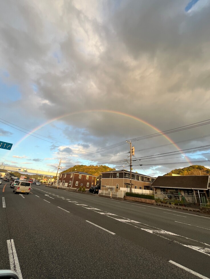 子ども達がにじのねからお家に帰る時間 大きな虹が空にかかってました。今日は急に寒くなった日で虹が出るような気候には思えなかったので、とてもとても驚きました