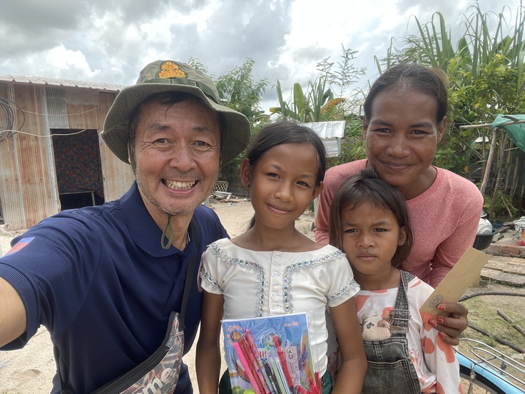 Siem reap州 Run ta ek地区の貧困世帯に自転車2台、食糧、文房具等を寄贈