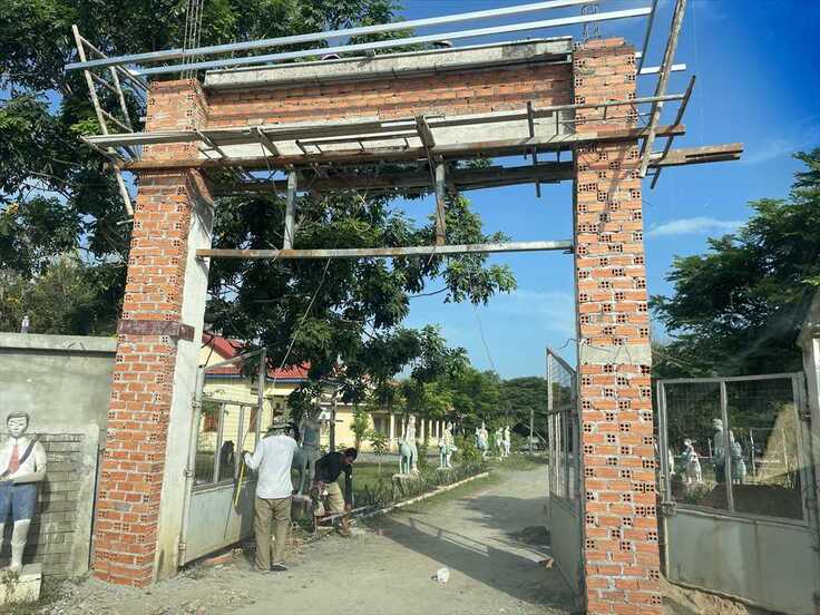 スクールサポートの一環として、現在建設中の校門。クリスマスまでには完成予定です。