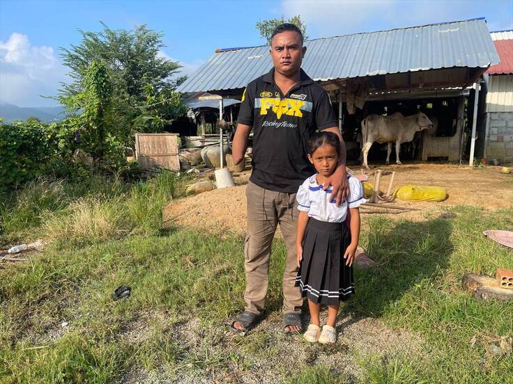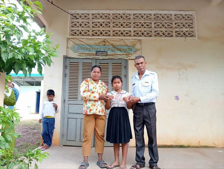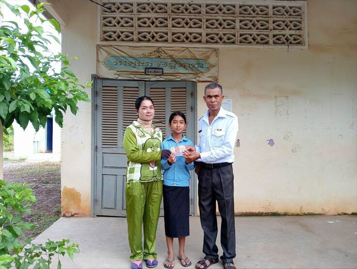 ボンクナー小学校からは、新たに、障害を持つ父親と2人暮らしの子ども(Sros Keopiseyちゃん)の支援要請を受けました。