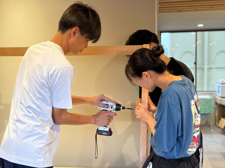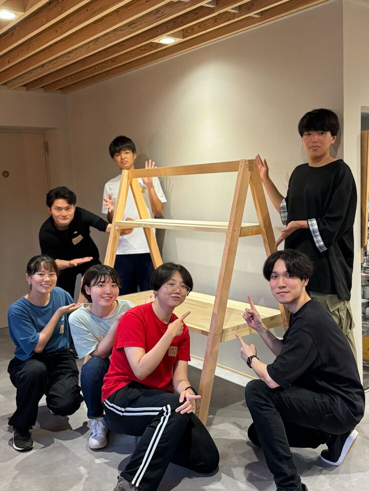 学生の皆さんと作ったゴミ箱や「アゲルシェルフ」も活用されています(^^)