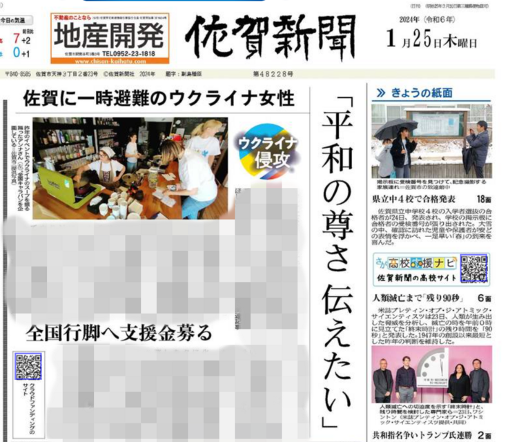 佐賀に一時避難のウクライナ女性、全国キャラバンで「平和伝えたい」 ロシア侵攻2年 佐賀県の縁で企画、クラウドファンデングで支援呼びかけ