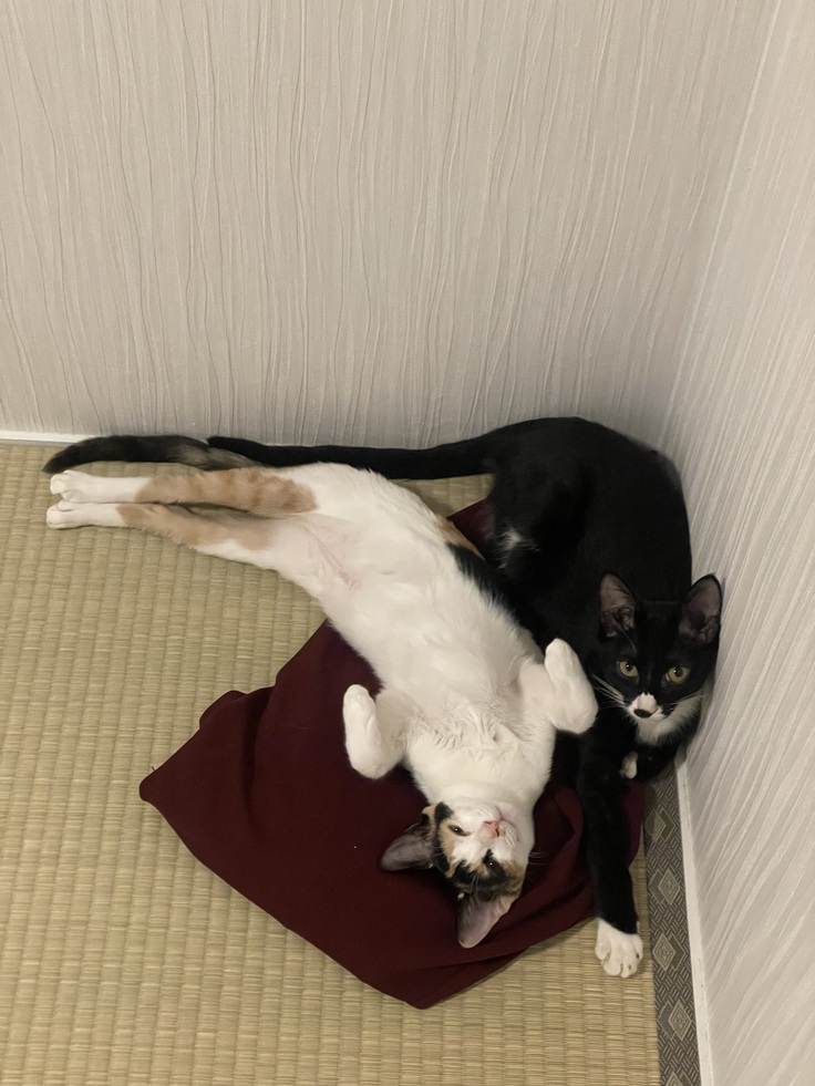 病気のオレオとリッツもパパママの様子をちゃんと見てくれている、心配かけてしまったなと思いながらも