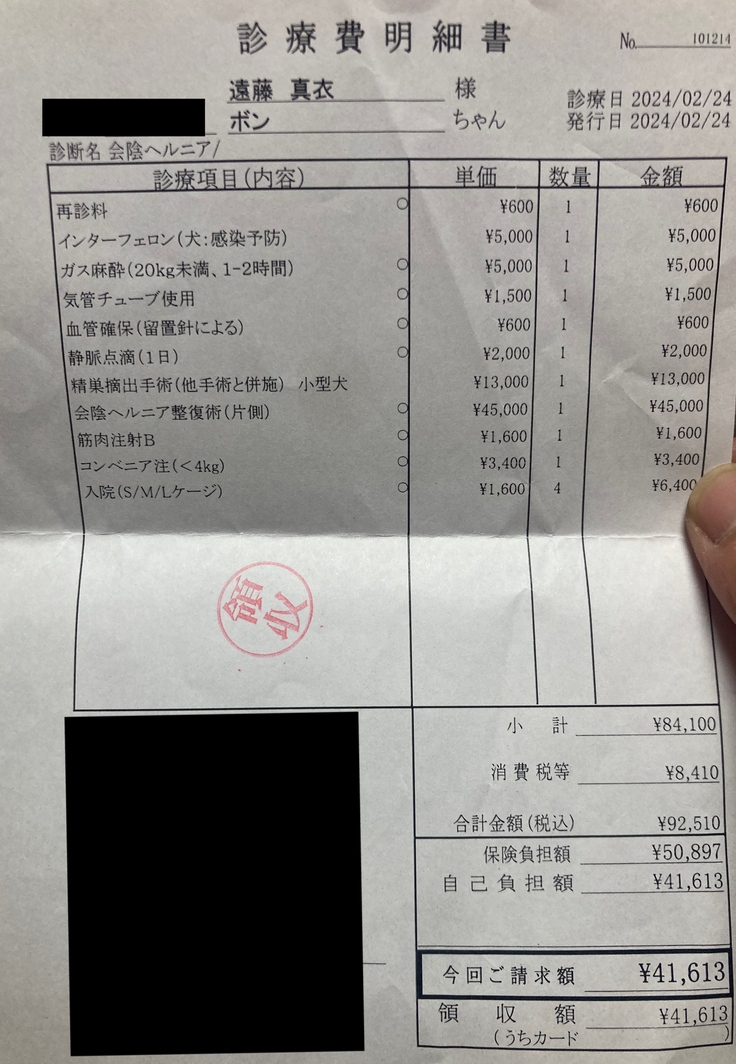 会陰ヘルニア術後のボンくんの様子をみていて手術後の回復までの姿がとても痛々しく辛かったです