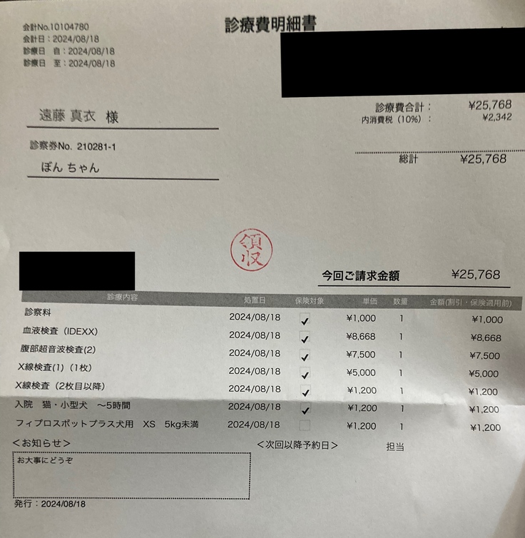 超音波による検査などしました