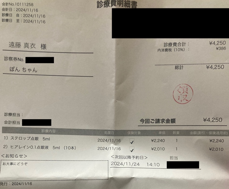 目薬の追加で病院へ