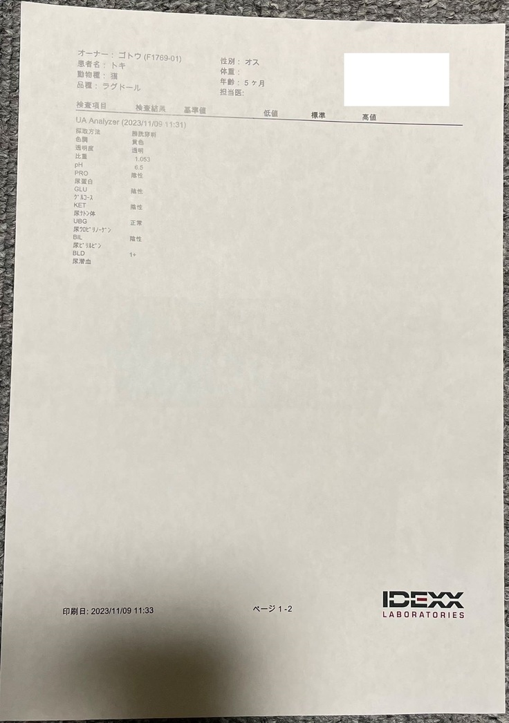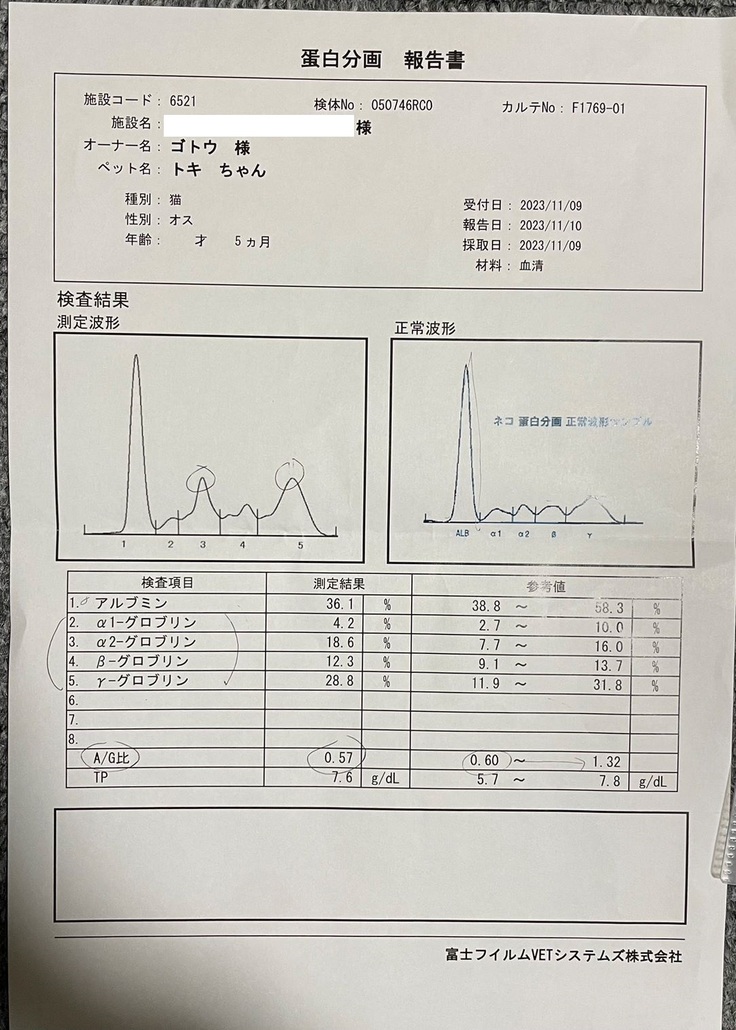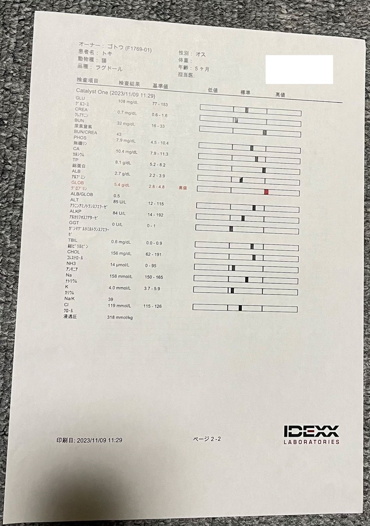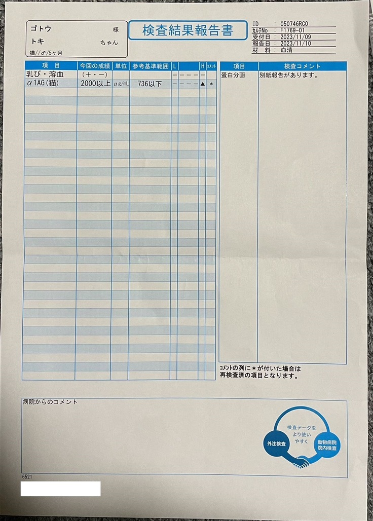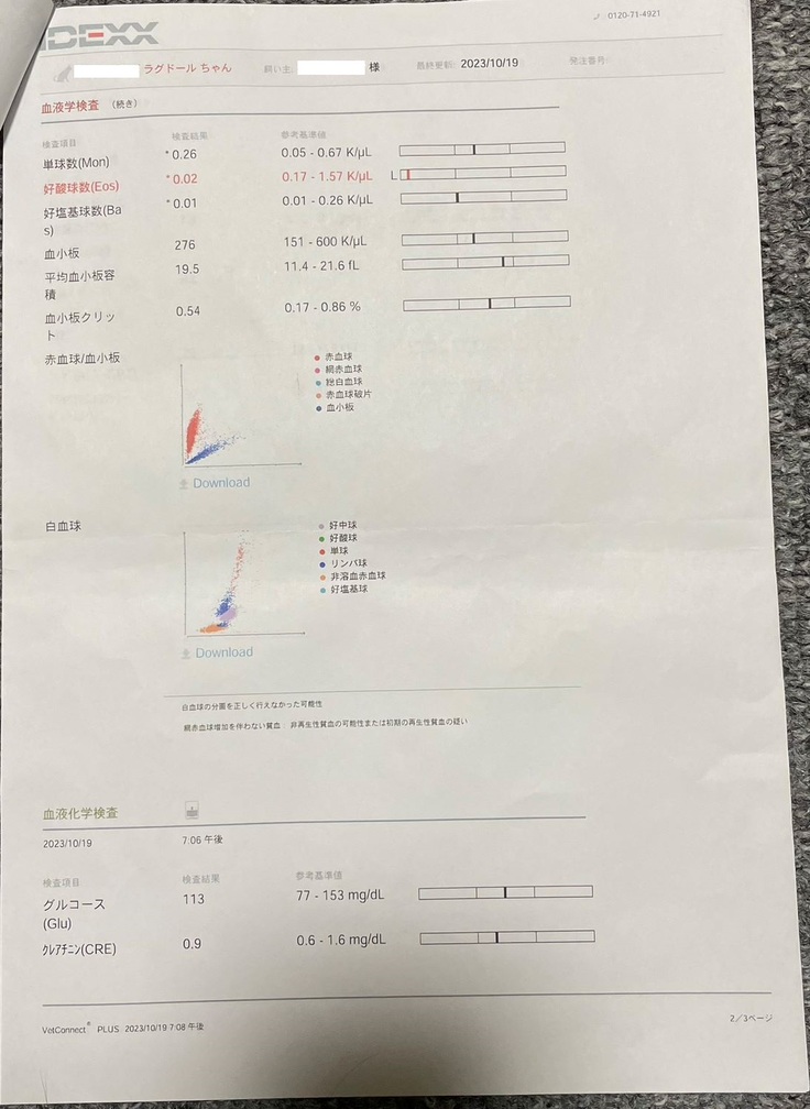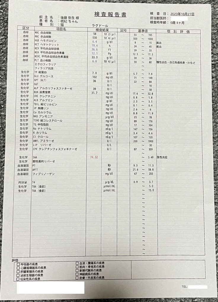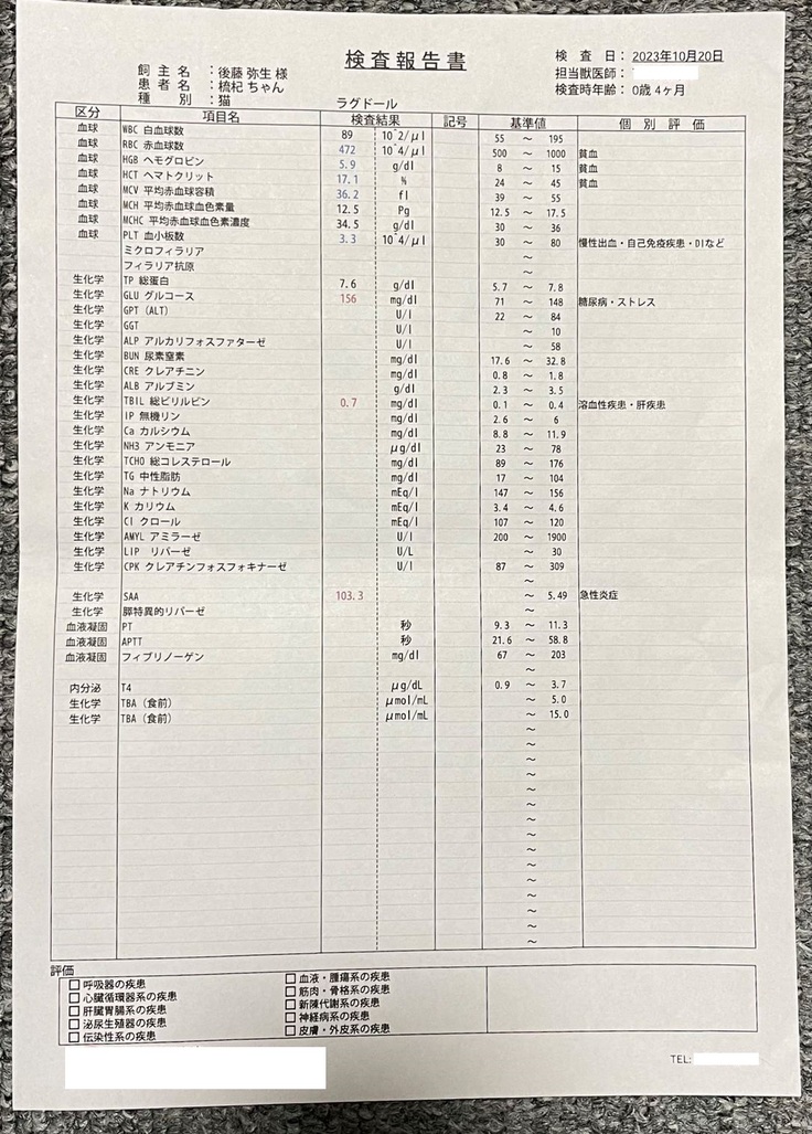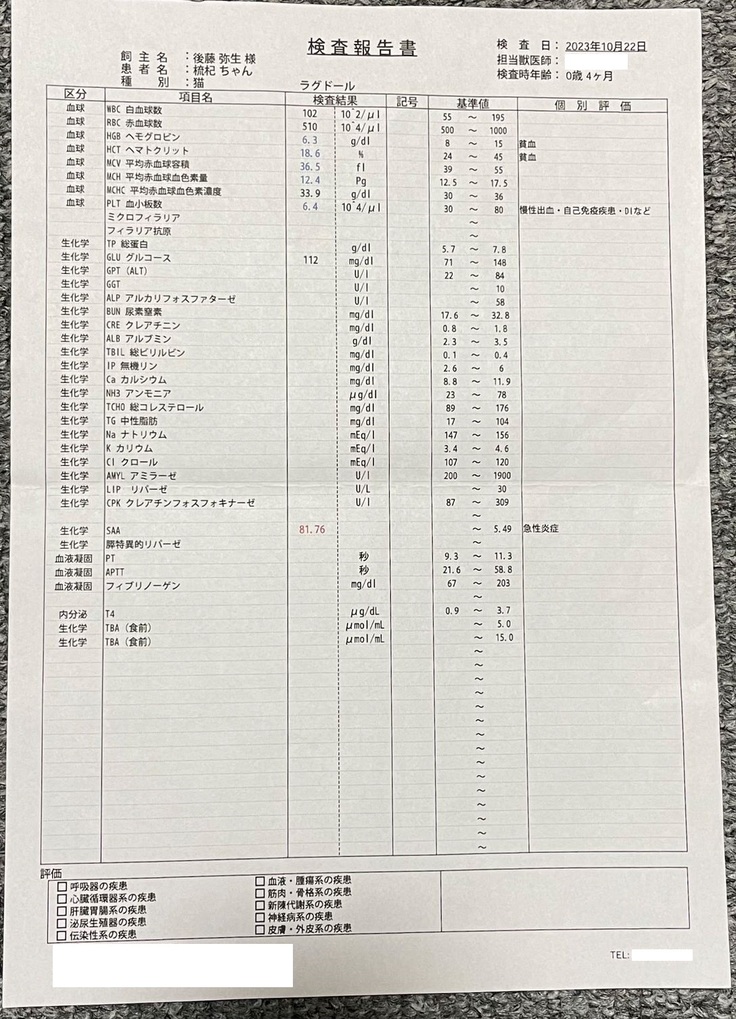 〈10/22の血液検査結果〉少しずつ良くなってきているのか、少しだけ自分からご飯も食べてくれるようになりました。