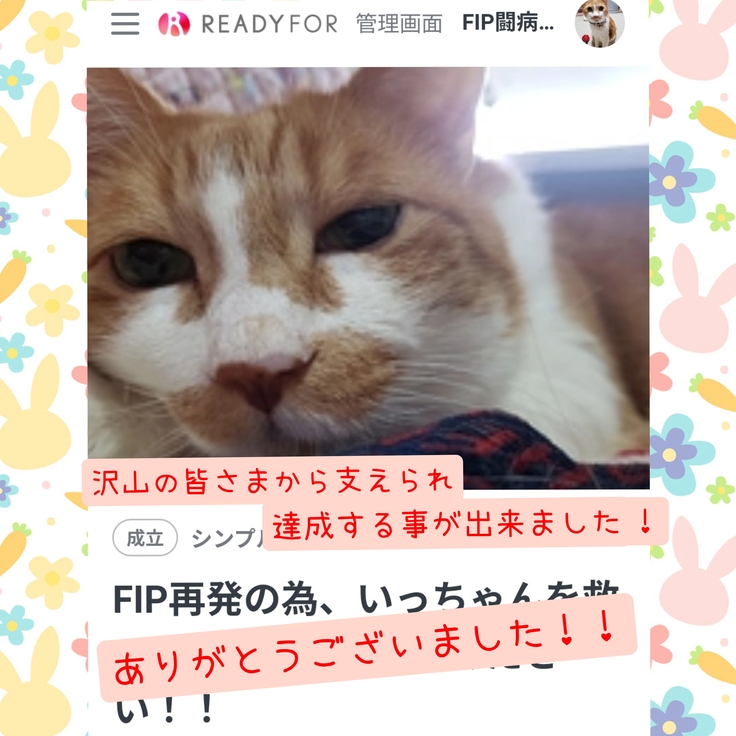 皆さまには2度目という無理なお願いをして申し訳ありませんでした。入院費用・検査費用・今後の検査費用などに使わせて頂きます。少しだけ前回のお薬代にもあてさせて頂きたいと思います。ご理解頂けると幸いです。 いっちゃんの為に大切なお金を、ご支援頂きまして本当にありがとうございました😌