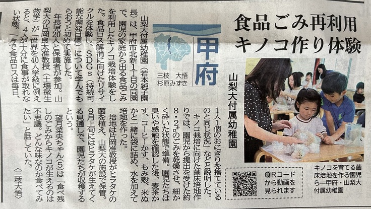 また、環境教育や食育活動についても積極的に関わりたいと考えており、山梨大学付属幼稚園で園児と保護者向けの食育活動を実施しました。今後も多くの幼稚園、小中学校で実施できるよう取り組みたいと考えています。
