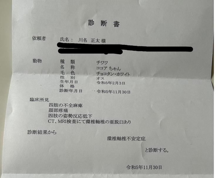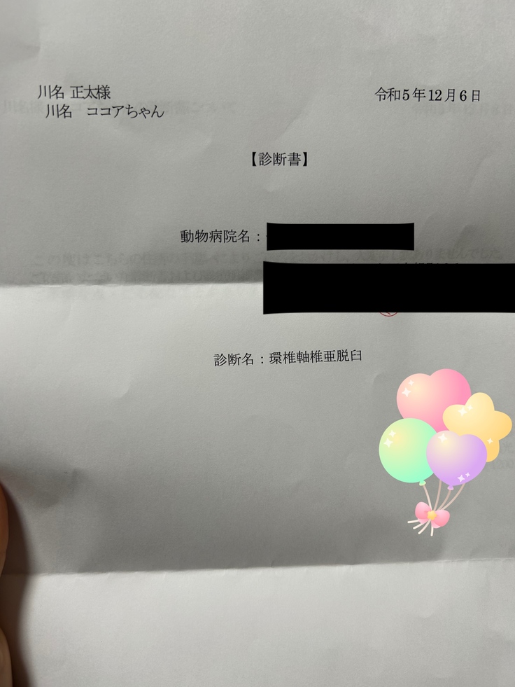 診断書ですが、ココアの状態が悪く