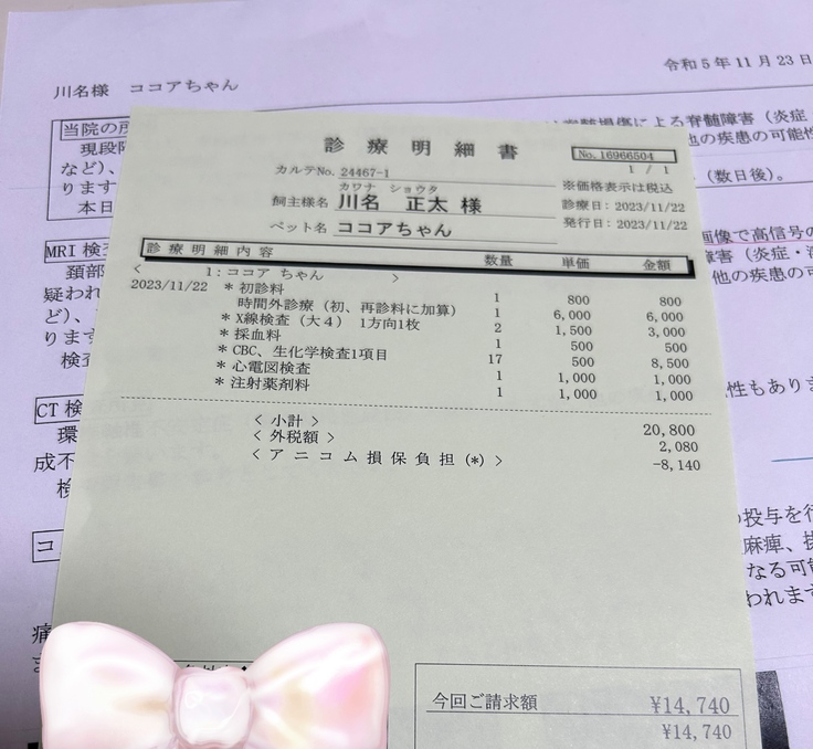 ページ上に掲載している診断書や診療明細書などの資料は全て動物病院から掲載の許諾を得ております。