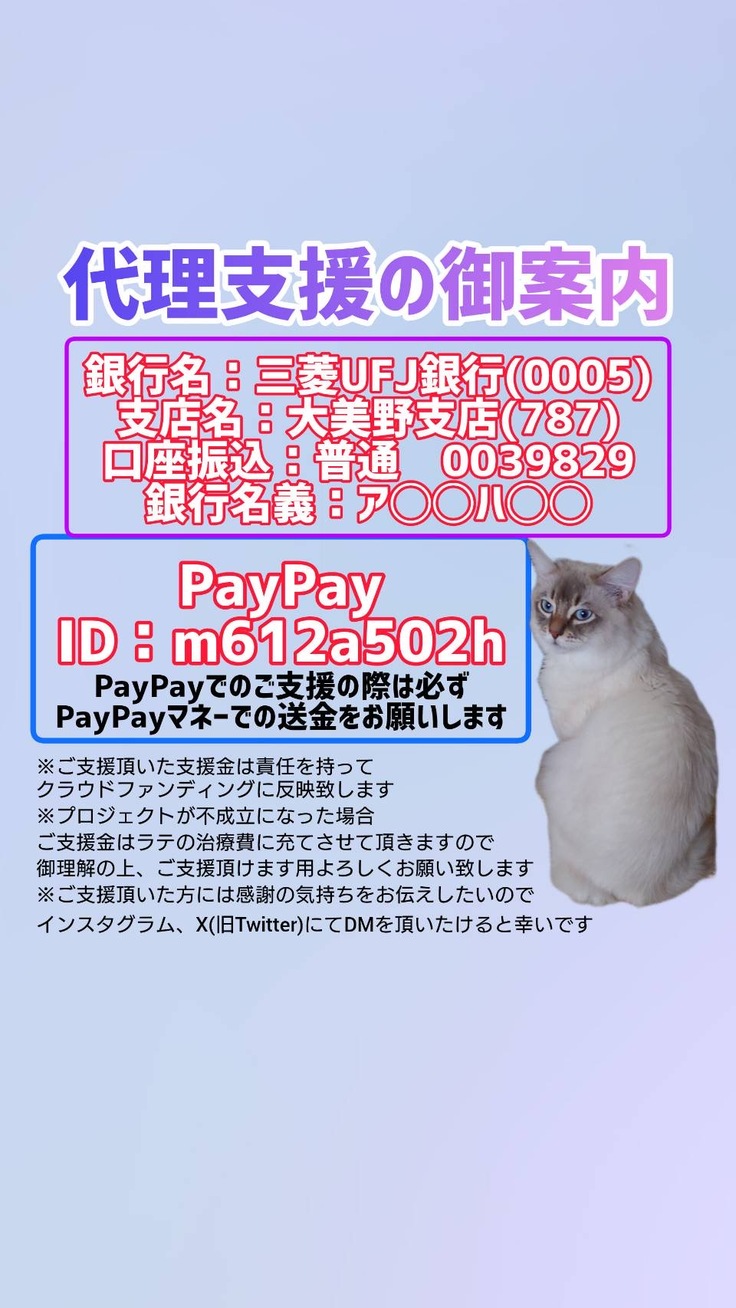 ラテの手術の為に拡散、ご支援ご協力