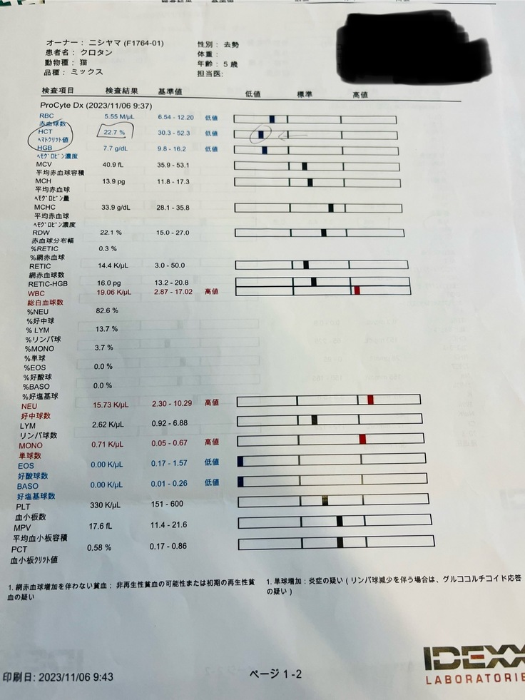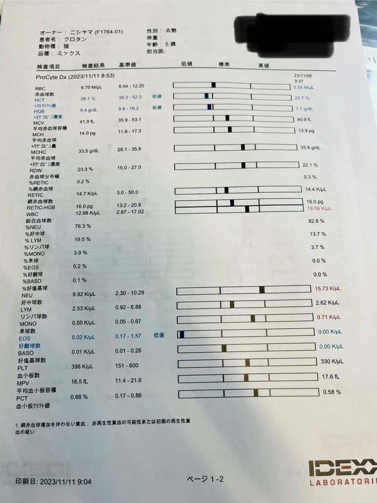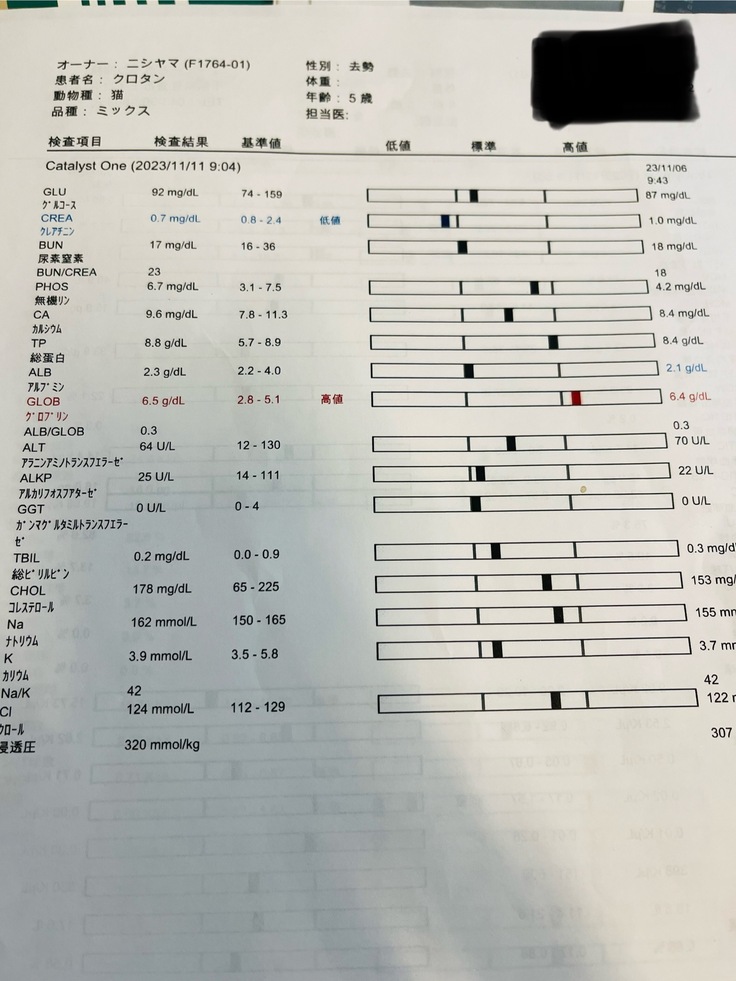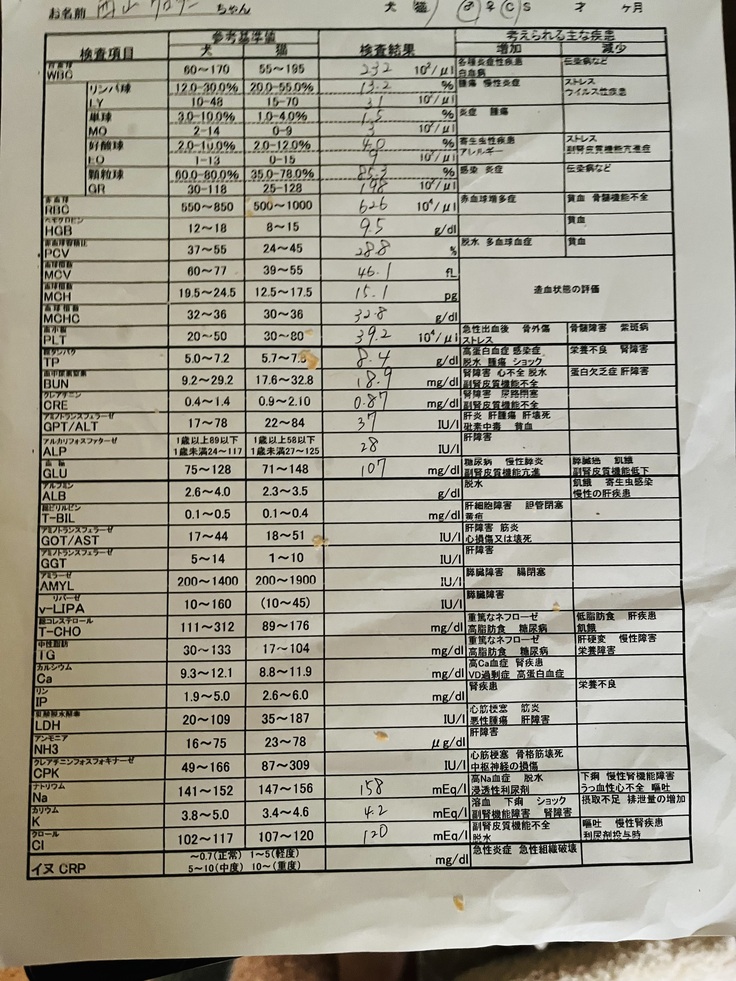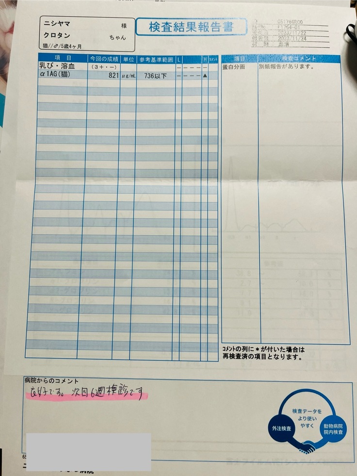 検査結果、明細書は動物病院の名前を出さない事を条件に掲載の許可を得てます。