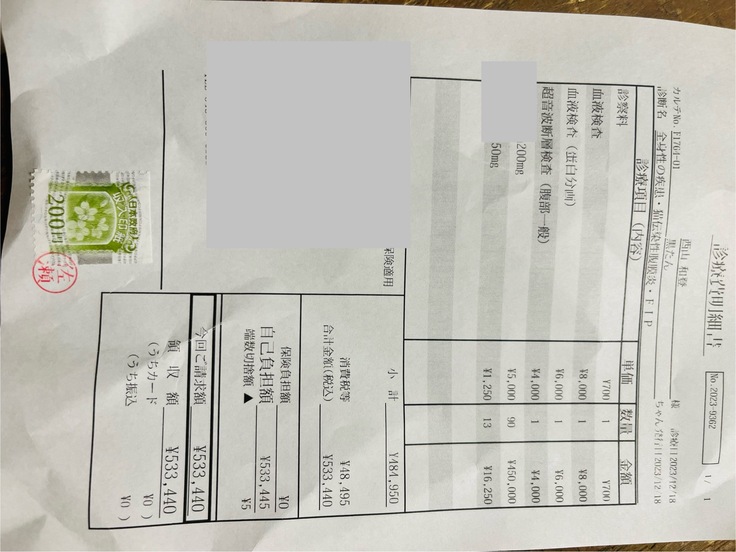 2回目10月29日の検査代50,000円(領収書破棄、5万数千円)