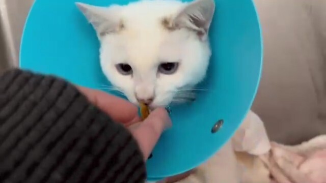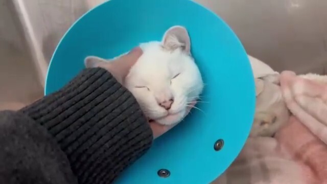 痛みも大丈夫みたいで、撫でてもらって完全に甘えております😊