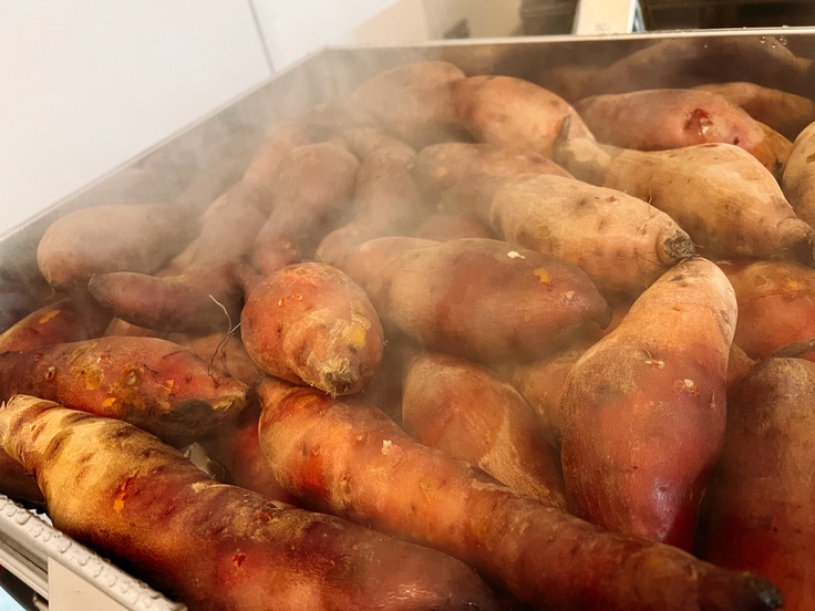 熟成された黄金色の干し芋が出来上がります。とろけるようなやわらかい干し芋です。スタッフも障がいのある人も関係なく、アイディア出しや意見交換をしながら最高の干し芋を仕上げていきます。ひとりでは上手くできないこともたくさんの人の連携で作り上げることはできます。その人らしさを見つけながら、適材適所として作業を組み立てていきます。