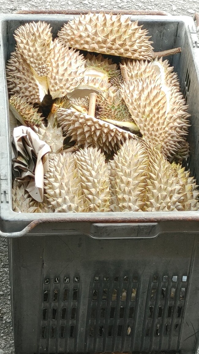 (朝市場で 無造作に置かれたドリアン 思わず目を見張ります)