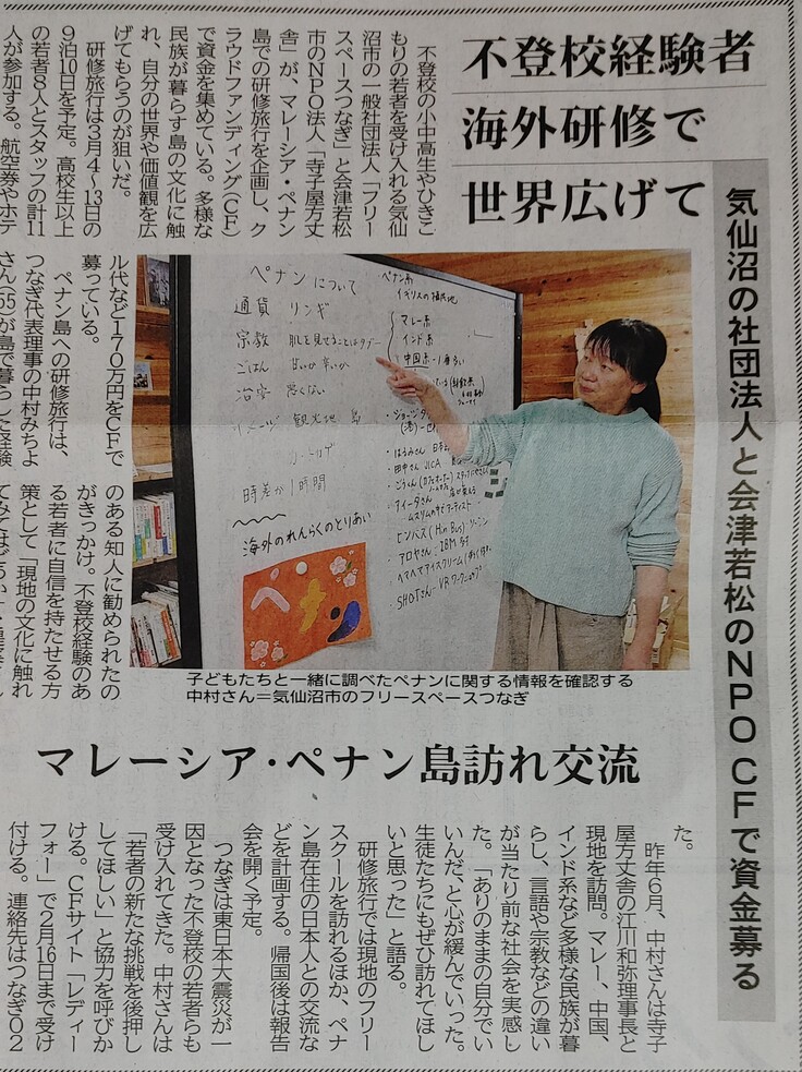 1月21日付けの地元の新聞「河北新報」にクラウドファンディングの記事が