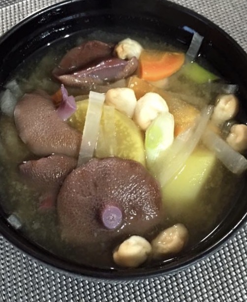 今は秋、キノコと野菜たっぷりのみそ汁が美味しいです。