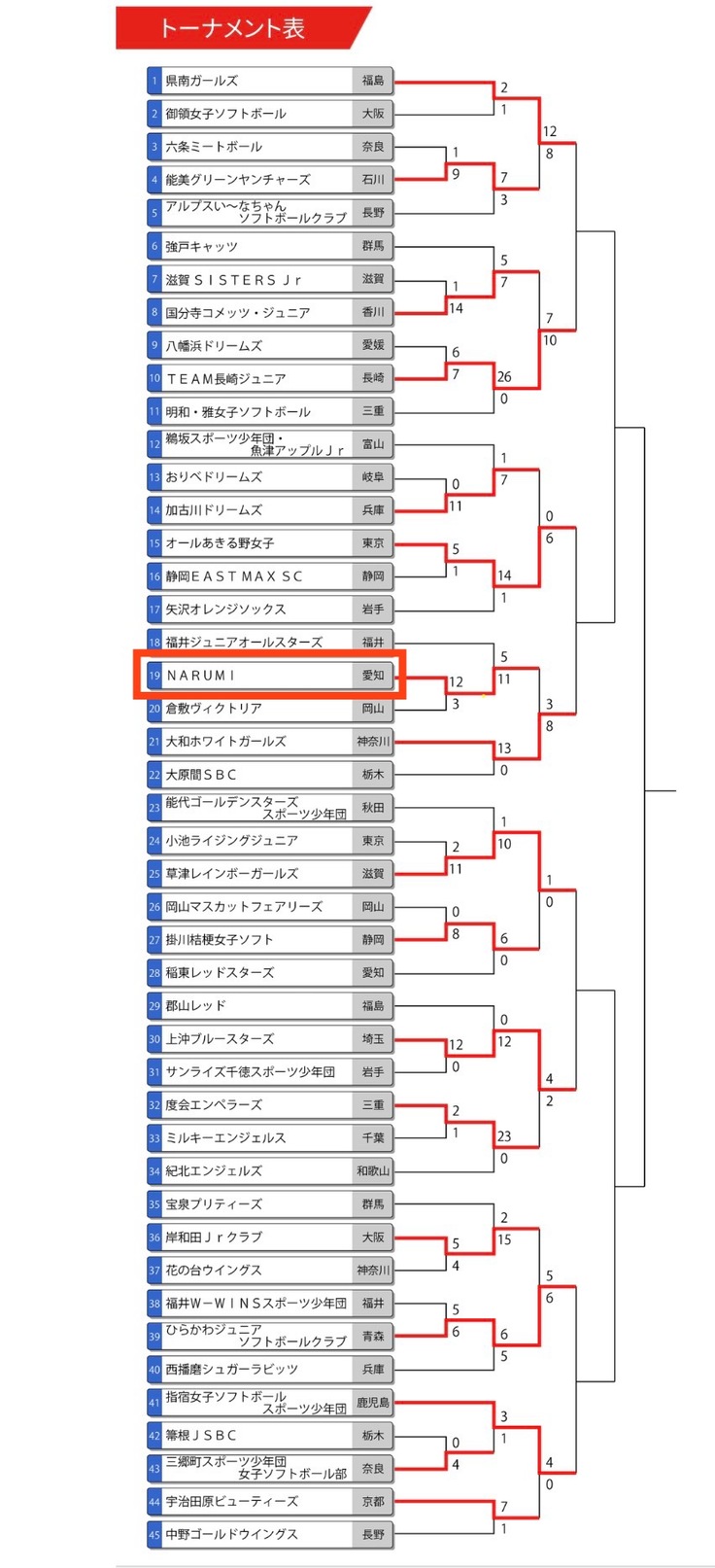 今大会、楽しみにしていた開会式が雨で中止になり、翌日の1回戦も降りしきる雨の中で試合。そんな状況でも泥だらけになりながら戦い見事勝利!!その後も雨が続き2回戦以降が順延・・ようやく晴れた5日目、NARUMIの子供達は気持ちを切らさず戦い2回戦を突破し、3回戦に進みました。勢いにのり勝利を掴みたかったのですが残念ながら惜しくも敗れてしまいベスト16という結果となりました。