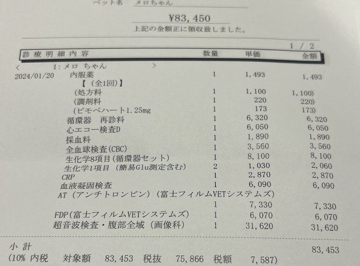本日、動物病院で3時間にも及ぶ検査をしてきました。メロさんも頑張ってくれました。