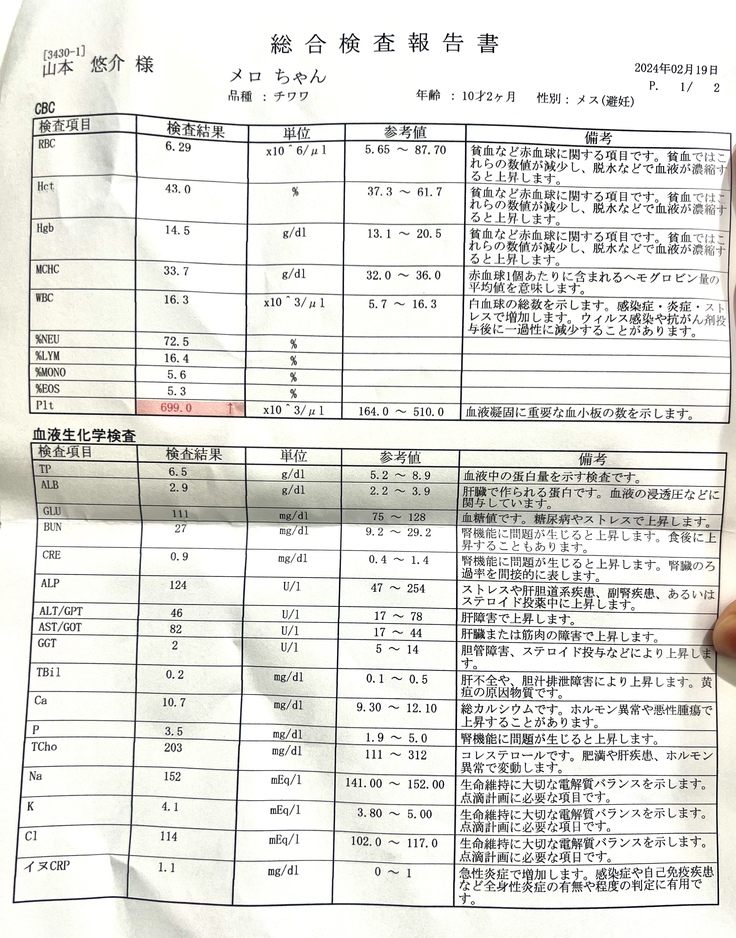 血液検査は一部、数値が高い部分はあるものの順調のようです。